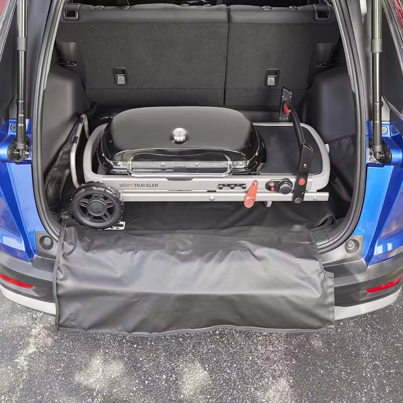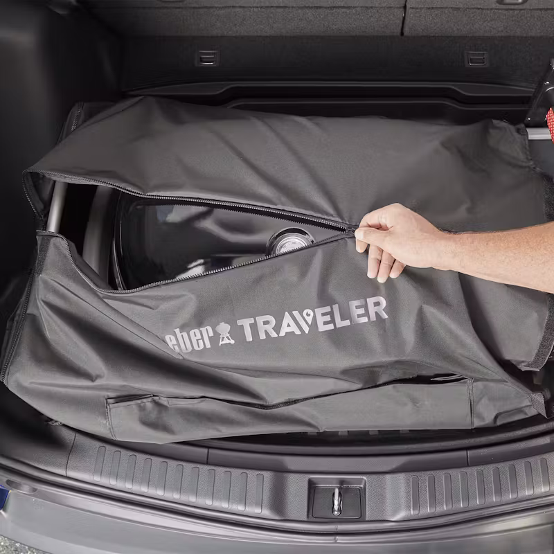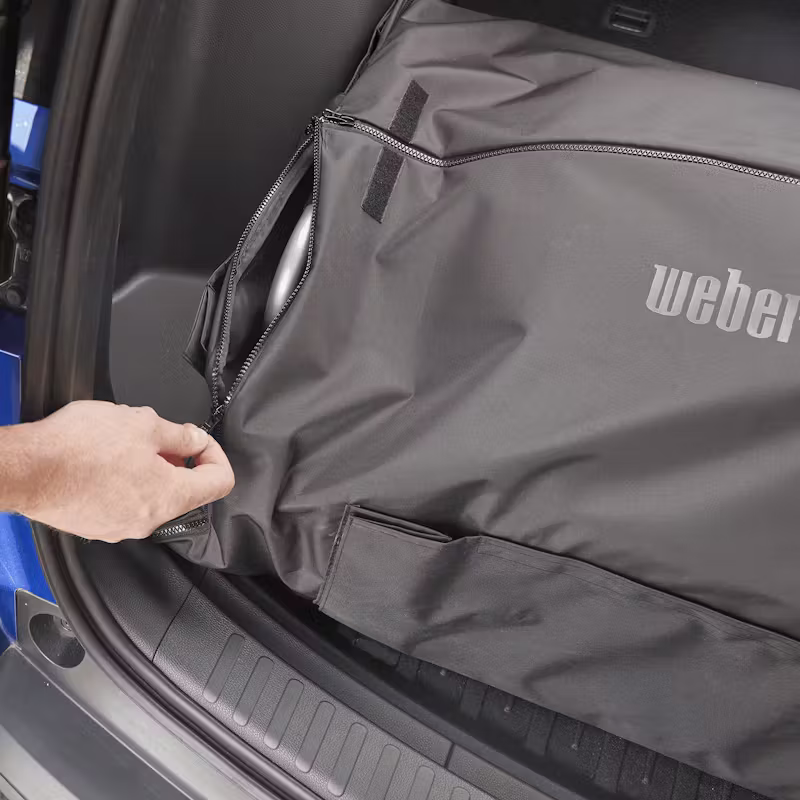 Protege el interior de tu vehículo de la grasa y la suciedad cuando quieras cocinar fuera de casa con tu barbacoa Weber Traveler. La tapa está diseñada para cubrir herméticamente la Weber Traveler y contener la grasa y los residuos, lo que te asegura que los demás objetos que lleves en el espacio de transporte permanecerán limpios durante el desplazamiento. El protector incluye un cómodo bolsillo para utensilios de barbacoa y queda plano al plegarlo para que no ocupe espacio cuando no esté en uso..